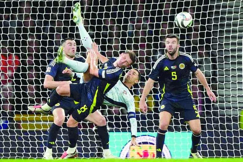 La Selección de Escocia sumó su primerpuntoenlaUEFANationsLeaguey le puso fin a la "racha perfecta" que tenía la Selección de Portugal. Además, dejó en blanco a Cristiano Ronaldo,quehabíamarcadoenlostres anteriores juegos del torneo continen-