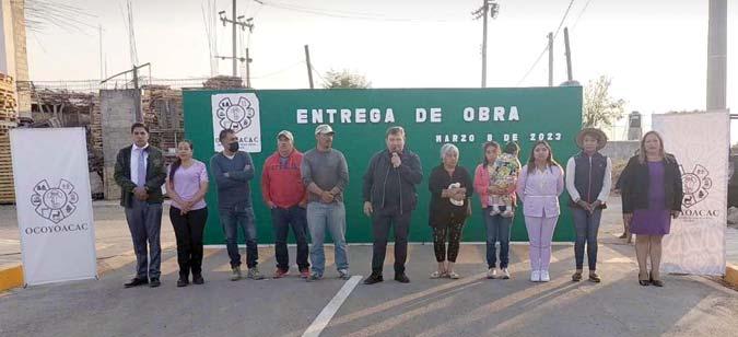 vialidades y caminos del municipio,al tiempo que se mejora la imagen urbana. Destaco que se tomaran acciones para seguir mejorando las calles de Ocoyoacac pero siempre unidos sociedad y gobierno para transformar al municipio. Los trabajos consistieron en un levantamiento topográfico,la excavación,colocación de material base y compactación para la posterior colocación de carpeta asfáltica con un espesor de 5cm, cubriendo una superficie de mil 556 metros cuadrados,la construcción de guarniciones y banquetas, nivelación de brocales de pozos de visita,reparación de tomas domiciliarias y la aplicación de pintura,lo anterior con un costo de dos millones 400, financiados por el Programa de Acción para el Desarrollo.