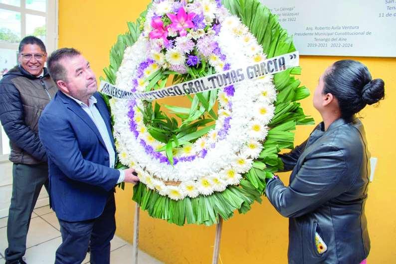 En un emotivo acto cívico, encabezado por el presidente municipal, Roberto Ávila Ventura, acompañado de la presidenta honoraria del Sistema Municipal para el Desarrollo Integral de la Familia (DIF),Johanna Fernández Sánchez, integrantes de su cuerpo edilicio, autoridades auxiliares,comisarios ejidatarios, comunidad estudiantil y ciudadanía en general, se realizó la conmemoración del 102 aniversario luctuoso de General Tomás García Martínez, un destacado héroe zapatista,nativo de esta comunidad,queesrecordadoporsu férrealuchaporlacausadel General Emiliano Zapata, luchando por los ideales del morelense que hacían puntual que "LaTierra es de Quien laTrabaja". La ceremonia, realizada en la explanada de la delegación, dio inicio con los honores de ordenanza de ley, así como el homenaje póstumoa uno de los líderes revolucionarios más destacados de la tierra fría de los volcanes, oriundo y nativo de esta delegación, que sigue presente en la historia de México por su cercanía, lealtad y fidelidad a la lucha de la revolución de 1910, que encabezó el General EmilianoZapata, caudillodelsur; y ahora, después de ciento dos años de su desaparición, se sigue rendiendo homenaje a este emblemático hombre, que luchó por los ideales de justicia y libertad impulsados por el zapatismo durante la Revolución Mexicana