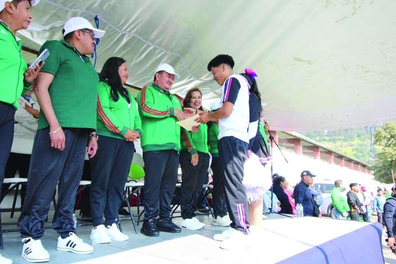 Después del evento cívico,dio inicio el desfile deportivo por las principales calles y avenidas de Cabecera Municipal, donde las y los participantes mostraron sus habilidades para formar pirámi-