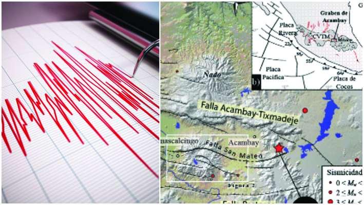 Entanto,elCentroNacionaldePrevencióndeDesastres (Cenapred)indicaqueunadelasfallasmáslargasesla deAcambay,lacualmideaproximadamenteunos38 kilómetrosdelongitudytieneungranescalón(escarpe)demásde400metrosdealturayfuelacausantedel últimosismodestructivoenestaregión.