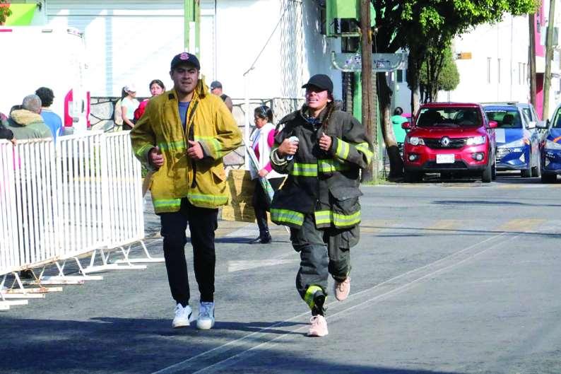 La carrera fue encabezada por 120 miembros de la corporación debomberos,50 deellosmujeres, quienes,con su característico arrojo lideraron el recorrido, algunos portando su uniforme completo de 17