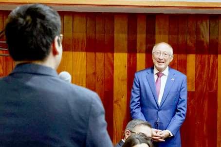 "A dos años de haber llegado a México, tengo más optimismo que nunca sobre el futuro de la relación porque establecemos marcos durables para transformar nuestra integración a largo plazo. Así, construimos un futuro brillante, próspero y con mayor bienestar para nuestros pueblos.Hepodido conocer México a fondo, particularmente, la grandeza de su gente.Altrabajarcon las autoridades,el sector privado y la sociedad, cosechamos los frutos de nuestra cooperación sin precedentes", Ken