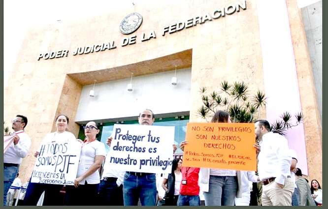 Porotraparte,enunrecorridoporinmuebles quealberganalPoderJudicialdelafederación, seobservaalexterioralostrabajadoresrealizandoguardiaslas24horasdeldíaconlafinalidaddeevitaralgunasorpresaporpartedel gobiernofederal;cabeseñalarquepreviamentelosinconformesinstalaroncasasdecampaña, asícomoimprovisaronunacocinaparapreparar alimentos.