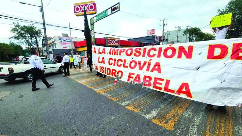 damente y bloquearon el paso vehicular. Utilizando lonas y pancartas, manifestaron su rechazo a la ciclovía,argumentando que afectará sus negocios al reducir el flujo de clientes.