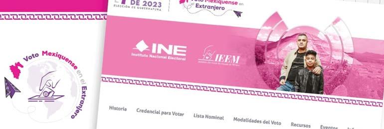 La página electrónica del Instituto Electoral del Estado de México (IEEM) www.ieem.org.mx aloja el minisitio del "Voto Mexiquense en el Extranjero" https://sistemaselec.ieem.org.mx/voto-extranjero2023/ en el que se orienta a la ciudadanía que radica fuera del país sobre el proceso para poder votar el 4 de junio próximo. En las secciones:Credencial para votar;Lista Nominal y Modalidades del voto,las personas usuarias encontrarán toda la información necesaria para complementar los pasos que les permitirán ejercer su derecho a voto para la Elección a Gubernatura 2023.Las y los interesados,que aún no cuentan con credencial expedida por el Instituto Nacional Electoral (INE) podrán ir completando los pasos necesarios para lograrlo. Mediante un video,en el apartado Credencial para votar se explica cómo tramitar la credencial del INE desde el extranjero,ya sea en Embajadas o en Consulados.Para realizar dicho trámite se deberán tener disponibles algunos documentos como:acta de nacimiento,identificación con fotografía (que puede ser el pasaporte), y un comprobante de domicilio en el extranjero.