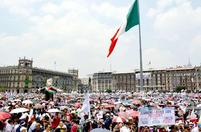 El contingente de alrededor de 600 personas entre trabajadores, estudiantes y padres de familia se reunió a las 10:00 horas en el monumento a Benito Juárez, donde partieron hacia la Plaza de la Patria.