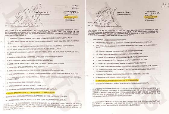mar García Harfuch,secretario de Seguridad Ciudadana de la Ciudad de México,confirmó que asistió a dos "juntas de autoridades" celebradas en Iguala,Guerrero,los días 7 y 8 de octubre de 2014, aunque aseguró que su presencia se dio en calidad de integrante de la División de Gendarmería Nacional y no como mando de la Policía Federal en el estado de Guerrero. El funcionario responde así,luego de que se le situara en Iguala,Guerrero,el día 7 de octubre de 2014,cuando Jesús Murillo Karam, el entonces procurador general de la República (PGR),presuntamente dirigió un cónclave para "fraguar" la “verdad histórica”.García Harfuch admitió su presencia en la fecha mencionada. Rechazó que haya estado en Iguala,Guerrero,el día de la desaparición de los 43 estudiantes normalistas de Ayotzinapa,es decir, el día 26 de septiembre de 2014. Aunque anteriormente,el actual funcionario capitalino ya había negado cualquier participación en la construcción de la 'verdad histórica'. Aseguró haber estado presente en Iguala,Guerrero,el día 7 de octubre,sin embargo,en esa fecha supuestamente participó en una reunión dirigida por el extitular de la PGR, Jesús Murillo Karam, para "urdir el montaje de la ‘verdad histórica’", esto según la investigación de la Fiscalía General de la República (FGR) en las imputaciones contra el abogado hidalguense, actualmente sujeto a prisión preventiva justificada por los delitos de tortura,desaparición forzada de personas y contra la administración de justicia.