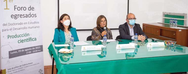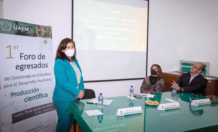 Con el objetivo de continuar fortaleciendo la actividad académica de excelencia de los estudios de posgrado que se imparten en la Universidad Autónoma del Estado de México (UAEMéx), se realizó el Primer Foro de Egresados del Doctorado en Estudios para el Desarrollo Humano:Producción Científica y la Retribución Social del Conocimiento,que tuvo como propósito iniciar los trabajos de una obra científica colectiva que abordará temas prioritarios de la sociedad como son la educación,la sostenibilidad y la ética. Durante la inauguración del Foro,la secretaria de Investigación y Estudios Avanzados de la UAEMÉX,Martha Patricia Zarza Delgado,reconoció la labor de los posgraduados,por seguir generando conocimiento pertinente que beneficie a la sociedad,el cual,además,abona a mantener los estándares de excelencia que la Secretaría de Educación Pública (SEP),a través del Sistema Nacional de Evaluación y Acreditación de la Educación Superior (SEAES), considerará como indicadores a Zarzamedir.Delgado explicó que con la desaparición de la categoría de Programa Nacional de Posgrados de Calidad (PNPC) del Consejo Nacional de Ciencia y Tecnología (CONACyT) a partir de 2024, la SEP,a través del SEAES,será la encargada de evaluar los programas posgrado bajo distintos criterios que actualmente se están construyendo para determinar si hay excelencia educativa en lo que se imparte. En ese sentido,reiteró que ejercicios científicos que aborden temáticas con perfil social deben replicarse en otros posgrados. En tanto,el director de Publicaciones de la Secretaría de Difusión Cultural de la UAEMéx,Jorge Robles Álvarez,expuso ante los investigadores la variedad de posibilidades que ofrece la Autónoma mexiquense para dar salida a los trabajos científicos que se generan como el Repositorio Institucional y el Sistema de Información Científica,Redalyc,ambas bases con reconocimiento internacional. En su oportunidad,Ana María Reyes Fabela,investigadora de tiempo completo del Centro de Investigación Multidiscipli naria en Educación (CIME) de la UAEMéx,describió que el programa de Doctorado en Estudios para el Desarrollo Humano,a cinco años de su apertura ha registrado resultados positivos,con 65 por ciento de egresados graduados,lo cual equivale a 11 doctores,mientras que cinco estudiantes que pertenecen a la tercera generación están por obtener su grado.