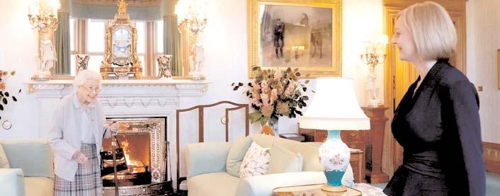 a reina Isabel,de 96 años,fue fotografiada durante su encuentro con la nueva primera ministra,Elizabeth Truss,en su castillo de Balmoral,Escocia.