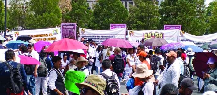 Con consignas como "¡Fuera Macarena", aproximadamente 50 mil trabajadores adscritos al Sindicato Nacional de Trabajadores de la Secretaría de Salud (SNTSA) salieron a las calles a manifestarse en contra de la secretaria de Salud, Macarena Montoya Olvera, calificándola como la peor que han tenido, debido a que señalan que el abasto de medicamentos apenas alcanza el 10 por ciento de los requerimientos médicos, describiendo la situación como catastrófica. Anteello,demandanlaresolucióndelpliego petitorio ingresado desde enero y esperan tener acuerdos sobre cómo y cuándo se darácumplimientoasusexigencias;además demandaron prestaciones económicas, la contratacióndepersonalcomoactodejusticia y equidad, el abasto de insumos médicos, material de curación y medicamentos para la adecuada atención de los pacientes. Ante estas carencias que padecen hicieron un llamado directo a la gobernadora, DelfinaGómezÁlvarez, solicitandoundiálogoabiertoconlostrabajadoresyse muestran dispuestosa colaborar en todo lo necesario, con la única petición de ser tomados en cuenta en las decisiones que afectan su labor.
