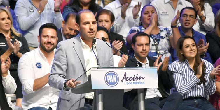 El Teatro Morelos fue el punto de reunión donde Marko Cortés, presidente nacional del PAN; Santiago Creel, vicepresidente de la Cámara de Diputados,y gobernadores de Yucatán, Guanajuato,