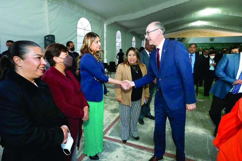 Al informe acudieron la secretaria de Planeación y Desarrollo Institucional, María Esther Aurora Contreras LaraVega,integrantesde gabinete y comunidad universitaria.