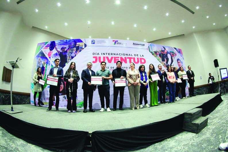 ElalcaldeRodríguezHurtado,flanqueado porlaPresidentaHonorariadelSistema MunicipalParaelDesarrolloIntegraldela Familia(DIF),MaryGómezMartínez,dijo ensuintervención:"siganluchando,sigan trabajando,Tlalnepantlaesunatierrade oportunidades,eslatierraquevaatrabajar siempreporlosjóvenesparaentusiasmarlos, motivarlosyseguiratendiendoalagenteque máslosnecesita,todasytodosustedesdeben seguirsepreparándoseenprodeunamejor sociedad,equitativaeigualitaria".Destacó. Enesteevento,algunosjóvenesasistentes fueronreconocidosporsutrabajorealizado yporeltalentoqueponenalserviciodesus