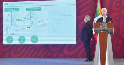 En Palacio Nacional,el mandatario estatal expuso que su administración ha impulsado la construcción de 14 obras,de las cuales,12 son viales y dos son de conectividad y transporte,y cuyo objetivo es aminorar los tiempos de traslado desde diferentes puntos del Valle de México y de la Ciudad de México,a la nueva terminal aérea,ubicada en Tecámac.