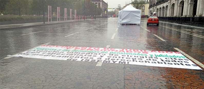 Toluca, México.- Con una mañana lluviosa iniciando el mes de julio, este lunes integrantes del Movimientode Jubilados y Pensionados en Defensa de susDerechos, llevaron a pequeña manifestación , para luego poner en mini plantón en medio de la calle Sebastián Lerdo de Tejada y frente a Palacio de Gobierno de la entidad, con la finalidad de que la Gobernadora Delfina Gómez Álvarez, intervenga para que les den solución a la falta de respuesta sobre sus pagos de retiro. Los inconformes quienes dijeron ser jubilados y pensionados al Instituto de Seguridad Social del Estado de México y Municipios (ISSEMyM), exigieron el pago inmediato de Exigimos al estado el cumplimiento inmediato de nuestras demandas,ya que hay compañeros esperando por varios años, algunos padeciendo enfermedades graves sin acceso a servicios de salud", declararon. Los quejosos,manifestaron ser en su mayoría adultos mayores que dedicaron su vida al servicio del Estado, y enfatizaron que no están recibiendo la atención y los pagos que les corresponden según la ley vigente.