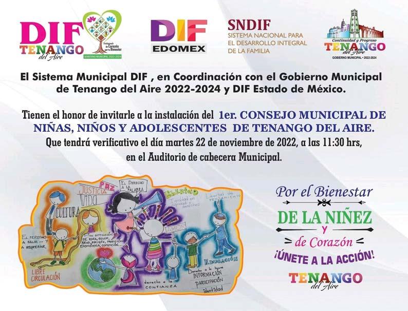 Para seguir protegiendo a las niñas,los niños,y adolescentes de Tenango del Aire se instalará el primer Consejo Municipal de Niñas,Niños y Adolescentes, con la intención de no perder de vista el objetivo de las políticas públicas relativas a todos los menores de edad,en las que se consideran todos los derechos que tienen los integrantes de este sector social.