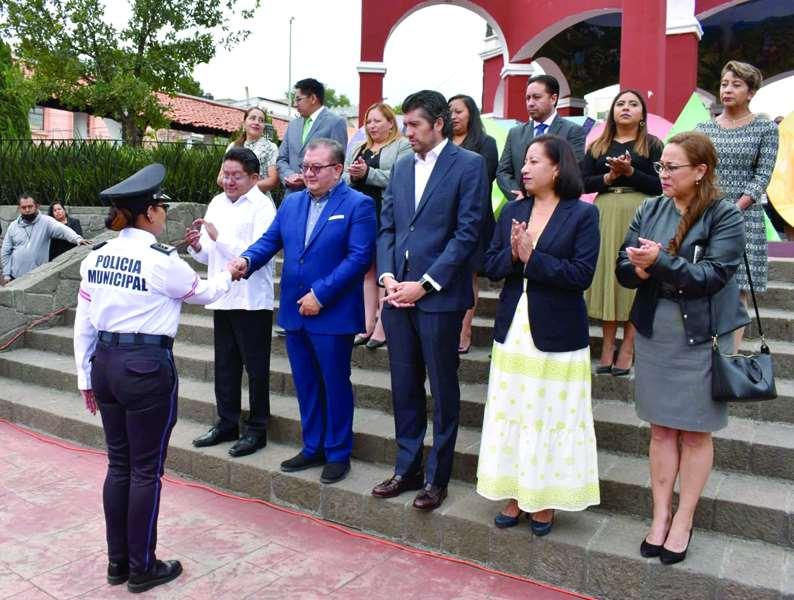 on el objetivo de reforzar la seguridadyenelmarcodel CCIII Aniversario de la Erección del Municipio de Ocoyoa cac, el alcalde Samuel Verdeja Ruíz entregó nuevo parque vehicular a la Dirección de Seguridad Pública Municipal, así como equipamiento a elementos de la policía y de la Coordinación de ProtecciónCivilyBomberos.