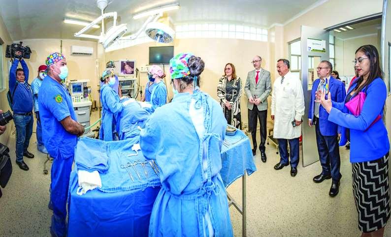 Durante el informe,Carlos Eduardo BarreraDíazhizolaentregasimbólica de equipo médico veterinario que consta de un tomógrafo, bom-
