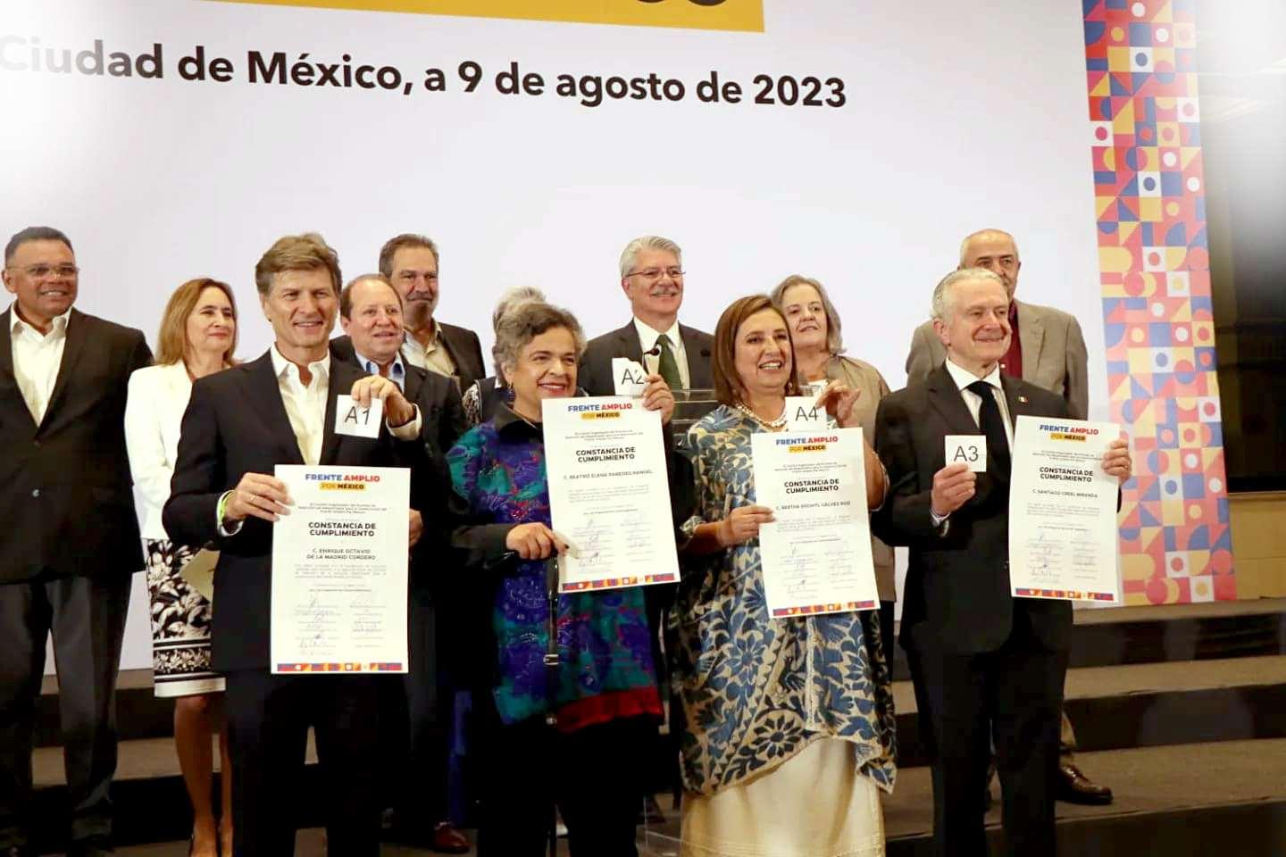 CambiandodeTema, losperiodistasdestacaron que la mayoría de los precandidatos a la Presidencia de la República por parte del Frente AmplioporMéxico nosólolograronreunirlas150 milfirmasciudadanasrequeridasparaseguirenla lucha por la candidatura,sino la cifra, en algunos casos,comoseríaeldelasenadora XóchitlGálvez Ruiz, la cifra se aproxima al medio millón. Con base en lo anterior, siguen adelante Beatriz Paredes Rangel, Santiago Creel Miranda y Enrique de la Madrid, además del perredista MiguelÁngelManceraEspinosa, quienesdesde ahora elaboran,se dice,sus propuestas y programas de campaña, como en su momento lo ha hecho el exsecretario de Relaciones Exteriores, Marcelo Ebrard, en materia de seguridad y salud.