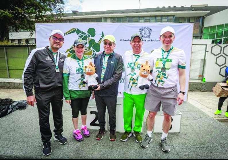 Con salida y meta frente a la Facultad de Medicina ubicada en Jesús Carranza esquina con Paseo Tollocan, los corredores comenzaron a llegar a muy temprana hora, para luego de recibir elbanderazo de salida a cargo del Secretario de Rectoría, Marco Aurelio CienfuegosTerrón,los deportistas sobre sillas de ruedas fueron los primerosentomarlasalida,pocodespués los participantes en los 10 y 5 kilómetros, y finalmente los de la caminata familiar enlos 2 kilómetros. Acompañado por el director de la Facultad de Medicina,Hugo Mendieta Zerón; la Secretaria de Administración, Eréndira Fierro Moreno;Pedro Rodríguez Magallanes, Secretario General del Sindicato ÚnicodeTrabajadoresyEmpleadosal Servicio de la Universidad Autónoma del Estado de México(SUTESUAEM)y Raúl Salaya Palma, Director General del Instituto Municipal de Cultura Física y Deporte del Ayuntamiento de Toluca; el Secretario de Rectoría, a nombre del Rector Carlos Eduardo Barrera Díaz, agradeció la participación de todos los participantes, al tiempoquereconoció laparticipación de las instancias convocantes, sobre todo para generar un ambiente saludable, en donde la medicina y el deportese encuentranentrelazados La tradicional ruta fue por Paseo Tollocan hasta Salvador Díaz Mirón, dondeloscorredoresafrontaronsobre todo las subidas y bajadas de los puentes, que exigieron una buena