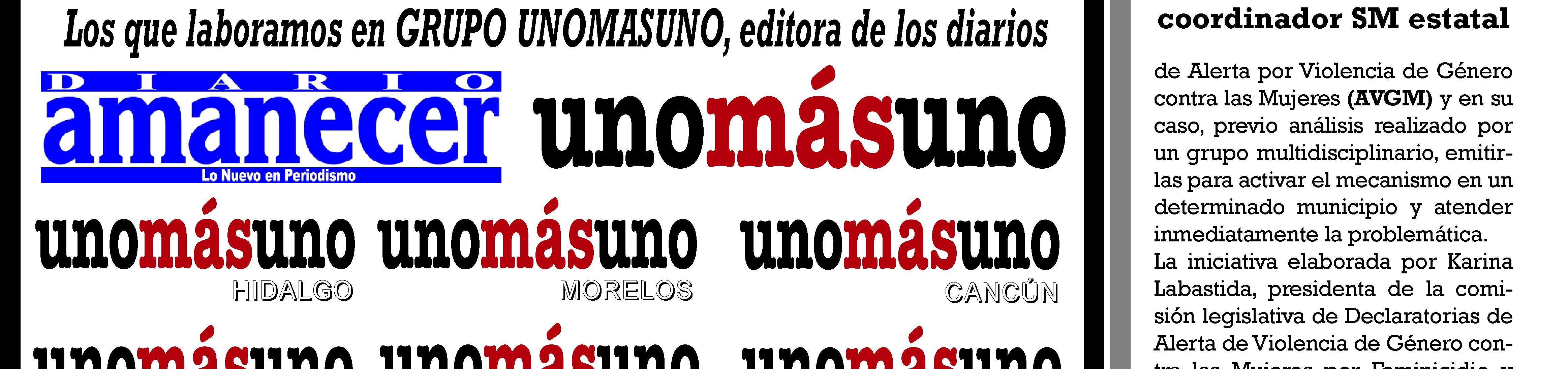 DIARIOAMANECERDEMÉXICO,DIARIOAMANECERDELESTADODEMÉXICO,ELDEMÓCRATADEMÉXICO,DIARIOATARDECERDEMÉXICO,DIARIOATARDECERDELESTADODEMÉXICO,circulacióndiaria,oficinasubicadas enPaseoTollocanNo.613Ote.,enToluca,Edo.deMéxico,Tels:(01-722)134-00-00,con14líneasAGENCIASINFORMATIVAS:EXC-ANE,ASIC,PRESSLINKONLINE,AME,MVT,unomásunoOficinasenMéxico,D.F.,GabinoBarredaNo.86 ColoniaSanRafael,Tels.:55-10555500con14líneas.AUTORIZACIONES:Reg.Gráfico:038/0390,CertificadodeLicituddeContenidoyCertificadodeLicituddeTítulo:15581ReservaDerechosdeAutorNo.04-2022-040809182700-101,CIRCULACIÓN CERTIFICADAPORROMAYHERMIDAYCIA.S.C.FOLIO00151-RHY.CORREOELECTRONICO:amanecerenlinea@hotmail.com naim@naim.com.mx JUANLÓPEZCRUZ DIRECTOR