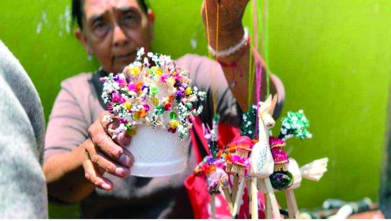 Como agradecimiento por los alimentos y porel Cuerpo de Cristo,losartesanos empezaron a realizar de palma o de hoja de maíz,cargadas con flores, frutos y dulces, los cuales se obsequiaban entre las per-