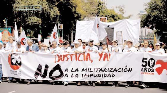 "Estamos aquí para recordarle al Estado las deudas de justicia con el pueblo mexicano.Hoy,la fuerza de la memoria popular se hace presente para señalar a uno de los responsables del genocidio perpetrado el 2 de octubre de 1968",aseguraron.