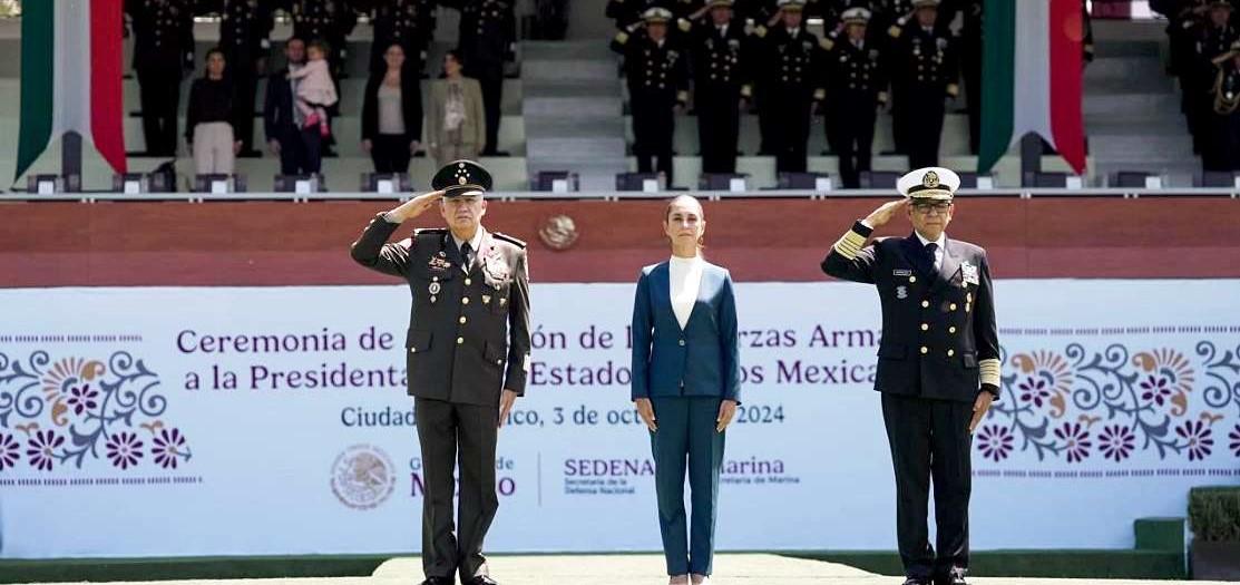 Ambos secretarios aseguraron que México vive un momento histórico, por lo que se encuentran "motivados" para enfrentar losretos porvenir. Ayer jueves 3 de octubre, la presidenta de México, Claudia Sheinbaum Pardo, asistió a la tradicional ceremonia de Salutación de la Secretaría de la Defensa Nacional (Sedena), de la Secretaría de Marina (Semar) y de la Guardia Nacional (GN), donde fue reconocida por los altos mandos como "Comandanta Suprema de las Fuerzas Armadas".