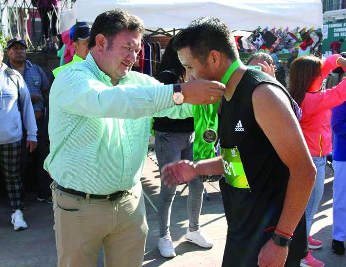 de familia cruzaron la meta, donde el alcalde ya los esperaba para otorgarles su medalla de participación.