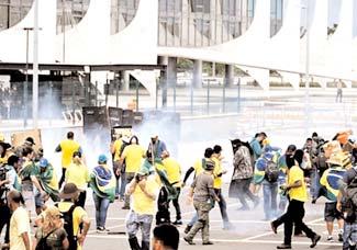 Escenarios: La tarde de ayer domingo,miles de fanáticos del ex presidente de Brasil, Jair Bolsonaro ,mejor conocidos como bolsonaristas,avanzaron rumbo al Congreso,ubicado en la capital Brasilia,en un intento por tomar por asalto la sede del poder legislativo,siguiendo el ejemplo de los magas,al estilo de los fanáticos republicanos seguidores de Donald Trump del 6 de junio de hace dos años,en el Capitolio de Estados Unidos.De acuerdo con los últimos reportes recibidos de medios locales y la información que circularon algunos seguidores en sus redes sociales,cientos de simpatizantes del expresidente ultraderechista Jair Bolsonaro invadieron este domingo el Congreso,el Tribunal Supremo y el Palacio Presidencial de Planalto,sedes de los tres poderes en Brasilia,causando numerosos destrozos.Los seguidores del ex presidente Jair Bolsonaro se presentaron con banderas y playeras amarillas e empezaron a romper los cristales de la sede del poder Legislativo en Brasilia
