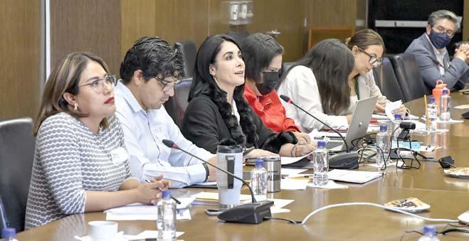 En la sesión,celebrada en modalidad mixta (presencial y remota), participaron,por la Iniciativa Spotlight en ONU Mujeres,su coordinadora,Nayeli Sánchez,y el experto jurídico Carlos Guillermo León;por el Grupo de Acción por los Derechos Humanos y la Justicia Social,A.C.,Karla Micheel Salas Ramírez y David Peña Rodríguez.También asistieron representantes de los grupos parla-