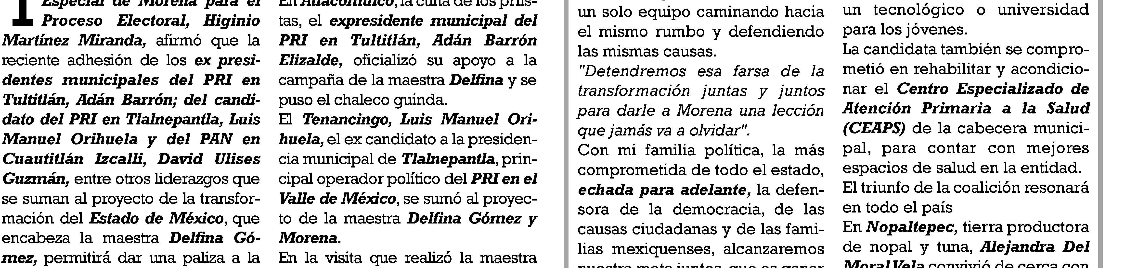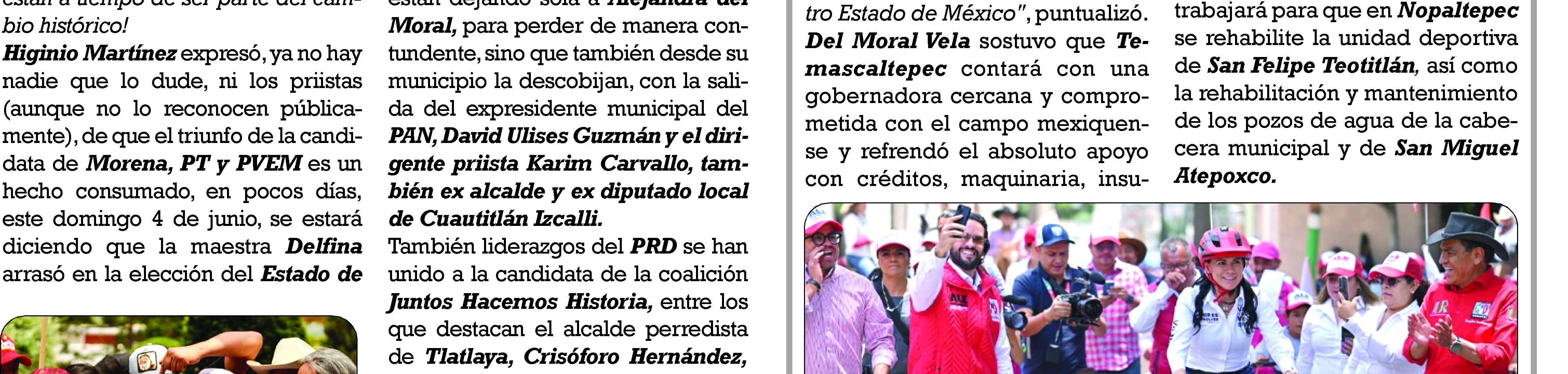 Cambiando de Tema, pero siguiendo con la política,los periodistas,bajo la dirección de nuestro presidente editor, Naim Libien Kaui, destacaron que en cuestiones publicitarias la candidata de Morena a la gubernatura del Estado de México, Delfina Gómez, supera