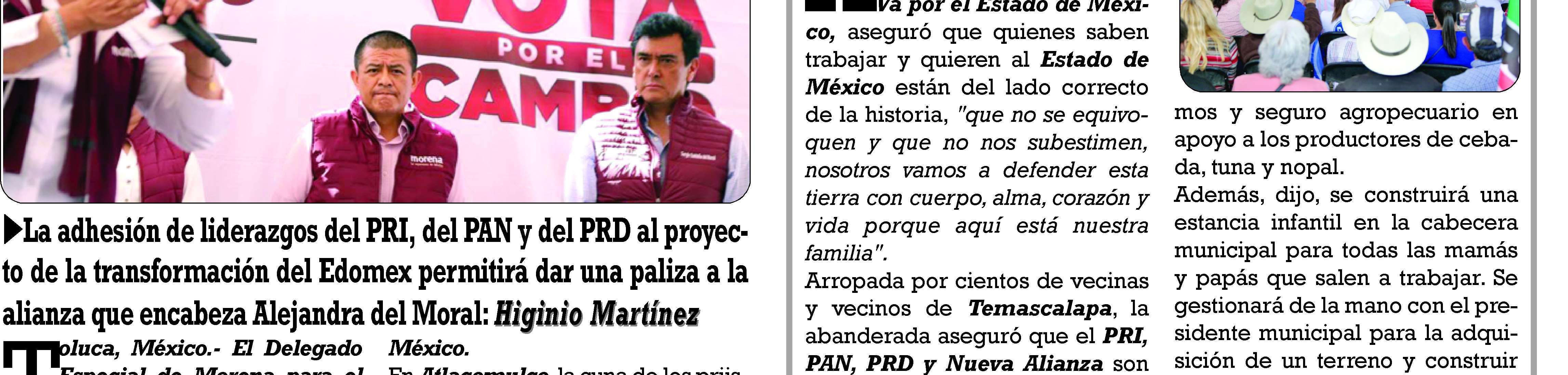Luego, enfatizó "no vamos a permitir que se quieranrobar laelección del Estado de México, no lo vamos a permitir y los ciudadanos le van a ponerunaltoaMorenael4dejunioy Alejandra del Moral será la próxima gobernadora.