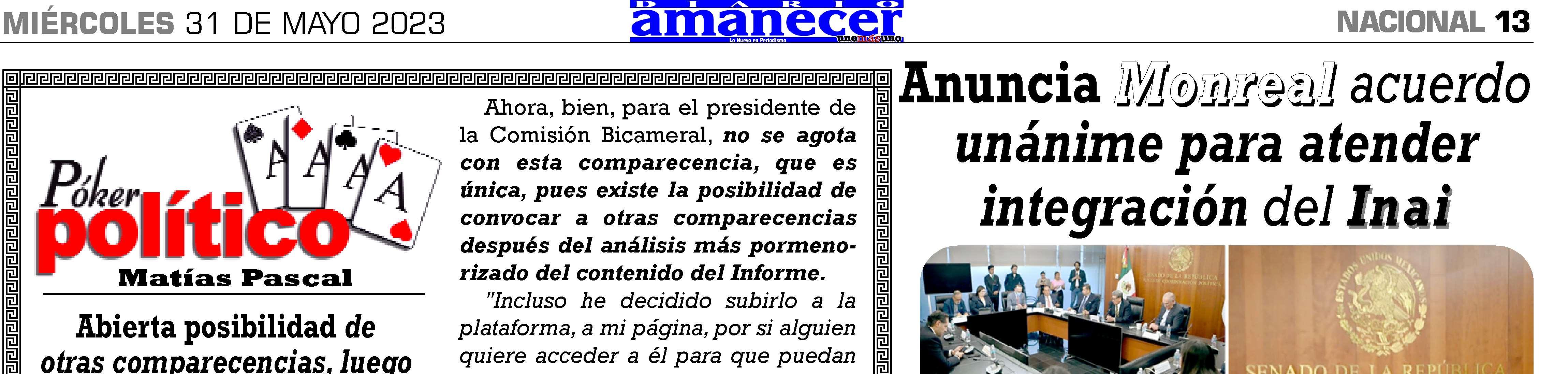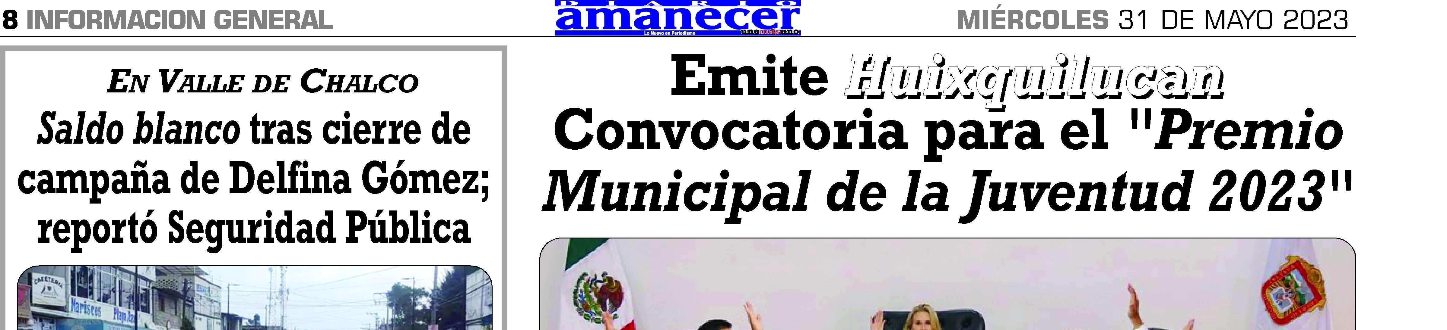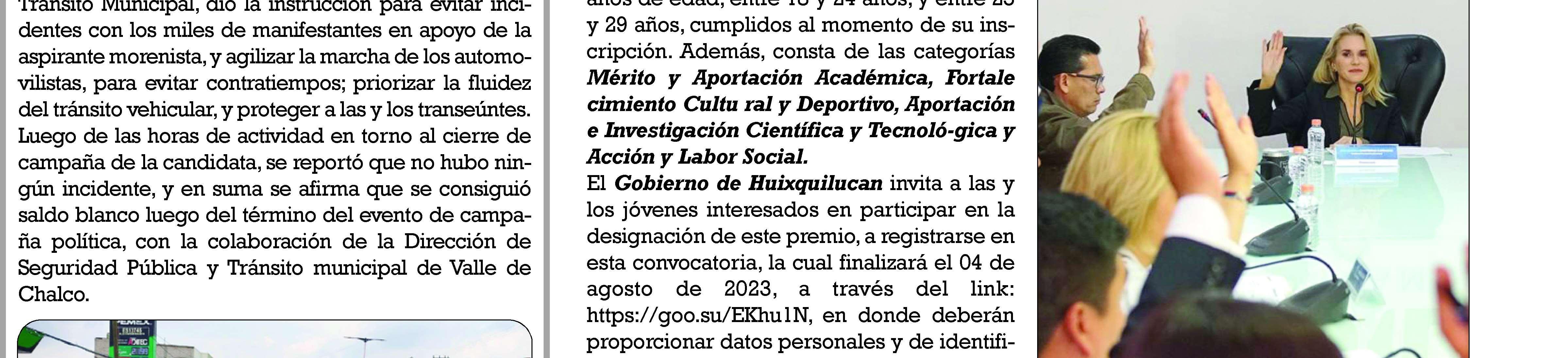 PideAdánAugusto limpiarPoderJudicial rculacióncertificadaporROMAYHERMIDAYCIA.S.C.FOLIO00151-RHY Dólar:19.28,alaventa;18.78,alacompra.Toluca:23Máx.,1Mín. MR PresidenteEditorDr.NaimLibienKaui Miércoles31demayode2023AñoXXXIVNo.12714 TanyaAcosta/RaúlRamírez11