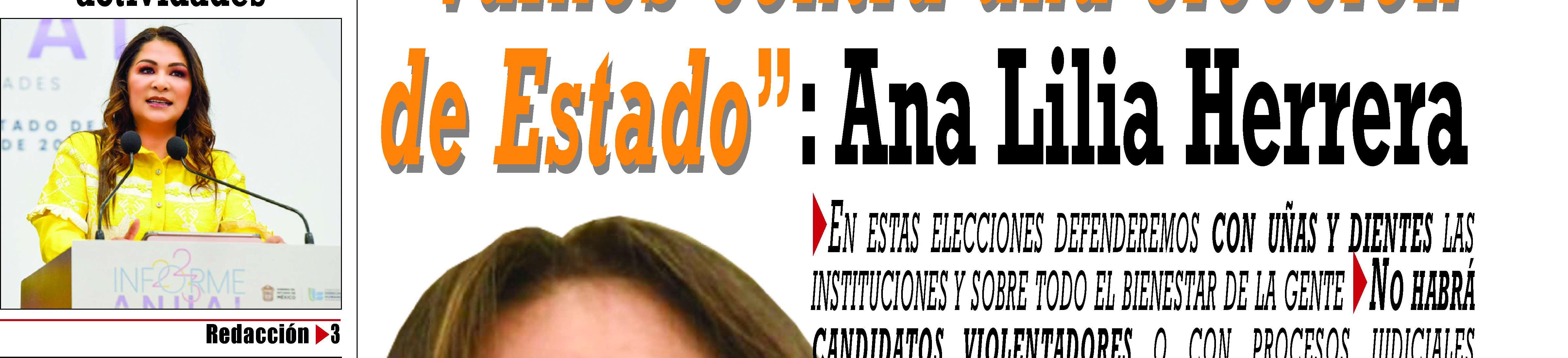 Toluca,México.- Lamañanadeestelunesen conferencia de prensa la dirigente estatal del Partido Revolucionario Institucional (PRI), Ana Lilia Herrera Anzaldo, manifestóque los priistas van a una elección muy retadora, sin embargo dijo estar contenta de que en cada rincón de la entidad muchos priistas levantan la mano bajo un espíritu de triunfo,de participación ycomprensióndequeenestaelecciónsejuegael futurodelpaís;porloquedejóenclaroquedefenderánconuñasydienteslasleyes,lasinstituciones y todos aquellos programas que benefician a la gente.