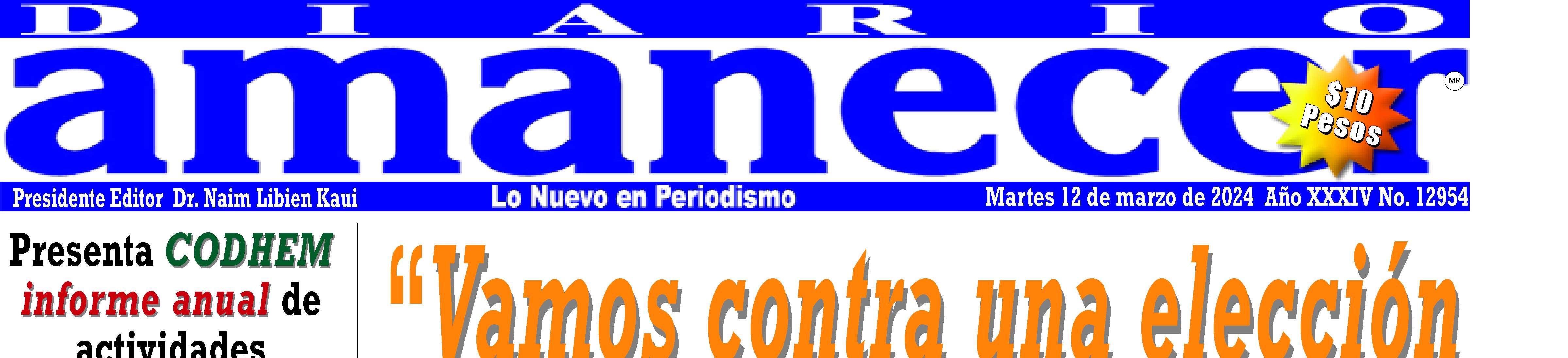DIARIOAMANECERDEMÉXICO,DIARIOAMANECERDELESTADODEMÉXICO,ELDEMÓCRATADEMÉXICO,DIARIOATARDECERDEMÉXICO,DIARIOATARDECERDELESTADODEMÉXICO,circulacióndiaria,oficinasubicadas enPaseoTollocanNo.613Ote.,enToluca,Edo.deMéxico,Tels:(01-722)134-00-00,con14líneasAGENCIASINFORMATIVAS:EXC-ANE,ASIC,PRESSLINKONLINE,AME,MVT,unomásunoOficinasenMéxico,D.F.,GabinoBarredaNo.86 ColoniaSanRafael,Tels.:55-10555500con14líneas.AUTORIZACIONES:Reg.Gráfico:038/0390,CertificadodeLicituddeContenidoyCertificadodeLicituddeTítulo:15581ReservaDerechosdeAutorNo.