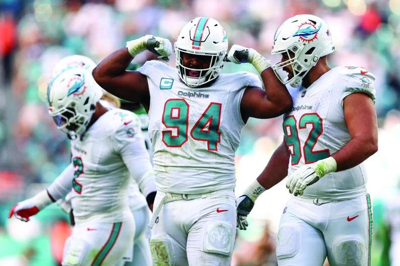 ElexjugadordeMiamituvoen 2023losmejoresnúmeros desdequellegóalosDolphins, haceunlustro;obtuvonuevecapturasdequarterback,65tackleadas y61presionesalmariscaldecampo; forzóunbalónsueltoydosrecuperados.