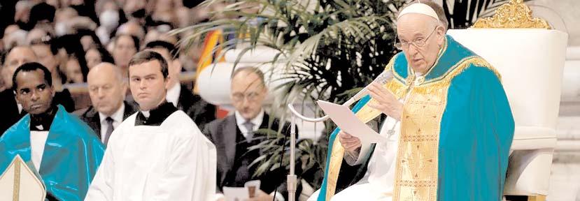 "Vivimos en sociedades heridas y asistimos (...) a escenarios de violencia,injusticia y persecución;además,debemos afrontar la crisis generada por el cambio climático y la pandemia,que ha dejado tras de sí un rastro de malestares no solo físicos,sino también psicológicos,económicos y sociales", explicó Francisco,que ofició la homilía sentado, por sus dolores de rodilla.