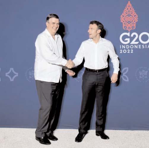 “El gusto que me dio saludar y platicar con el presidente de Francia,Emmanuel Macron,de temas primordiales,en el marco de la cumbre del G20;la cual se lleva a cabo en la isla de Bali,en Indonesia”, publicó Ebrard en sus redes sociales.