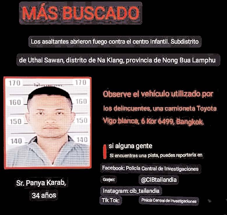 El presunto asaltante disparó con un rifle automático a los presentes en una escuela infantil localizada en la provincia de Nongbua Lamphu,que generalmente acoge a niños de entre 2 y 5 años,antes de darse a la fuga en una furgoneta.
