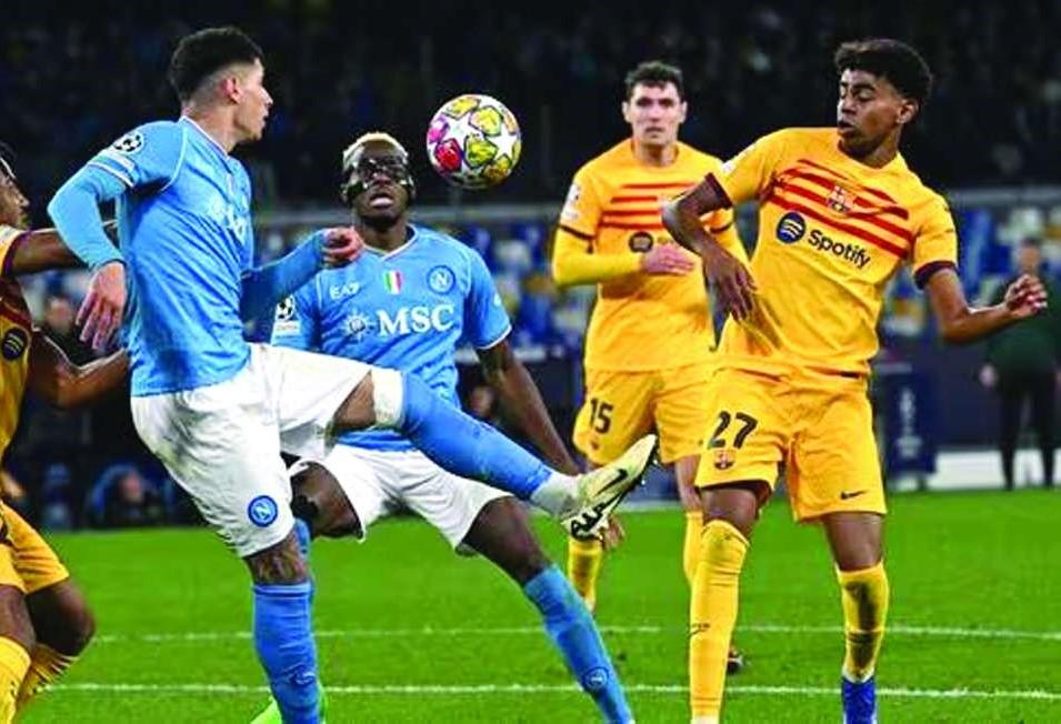 Una conducción de Lamine acabó con un paseaRaphinha,querematóalpalo,elrechace lo cazó Cancelo que puso el 2-0. Sin embargo,Napoli se encontró mejor en el campo y en la primera llegada, el central Rrahmani anotó el 2-1.