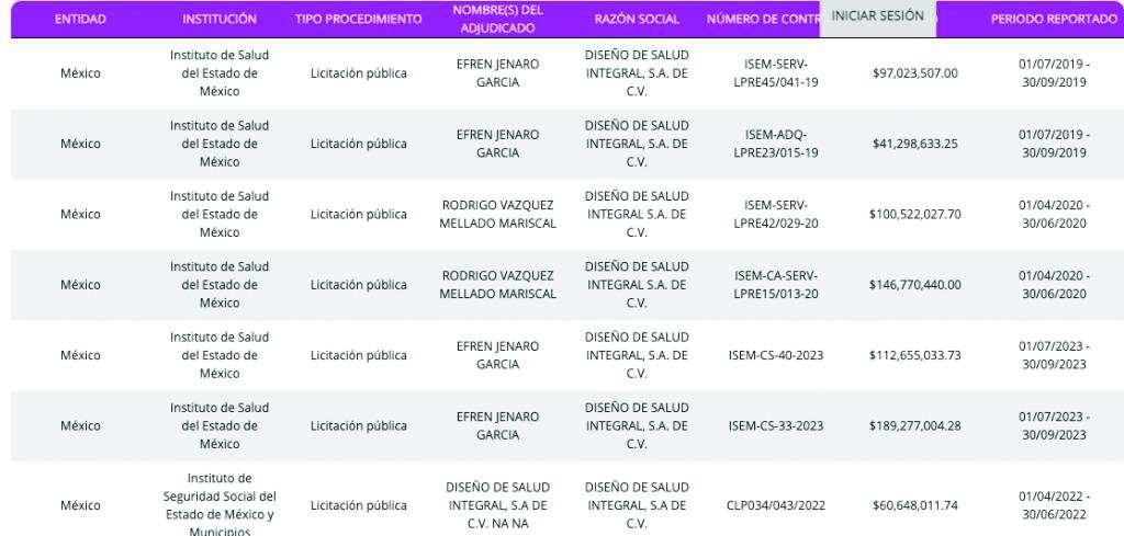 InformaUIFqueelEstadode México,soloenelaño2023,pagópoco másde540millonesdepesosala empresaDiseñodeSaludIntegralS.A deC.V,empresavinculadaalConsorcioLatinus.