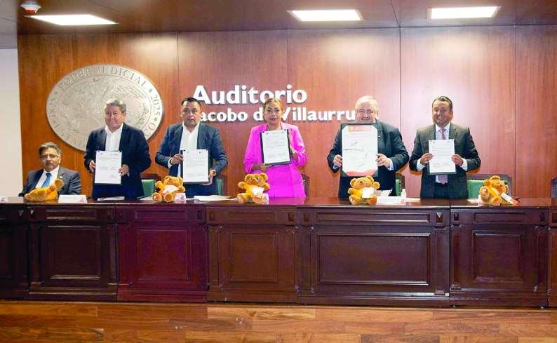 En el Auditorio Jacobo de Villaurrutia de los Juzgados de Lago de Guadalupe, en Cuautitlán Izcalli, Sodi Cuellar suscribió el documento con los alcaldesAldo Ledezma Reyna,de Cuautitlán México;SergioLunaCortés,de Tultepec;Andrés Montoya Martínez, de Coyotepec y Victoria Víquez Vega, de Melchor Ocampo, a quienes también reconoció por emprender acciones preventivas y entregó un ejemplar del cuadernillo de mediación en el que se promueven los mecanismos alternos de solución de conflictos.