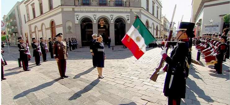 En solemne ceremonia efectuada en la Plaza de los Insurgentes y acompañada por el Oficial Bernardino Barranco Cortés de la Guardia Nacional; la alcaldesa celebro el legado del Congreso