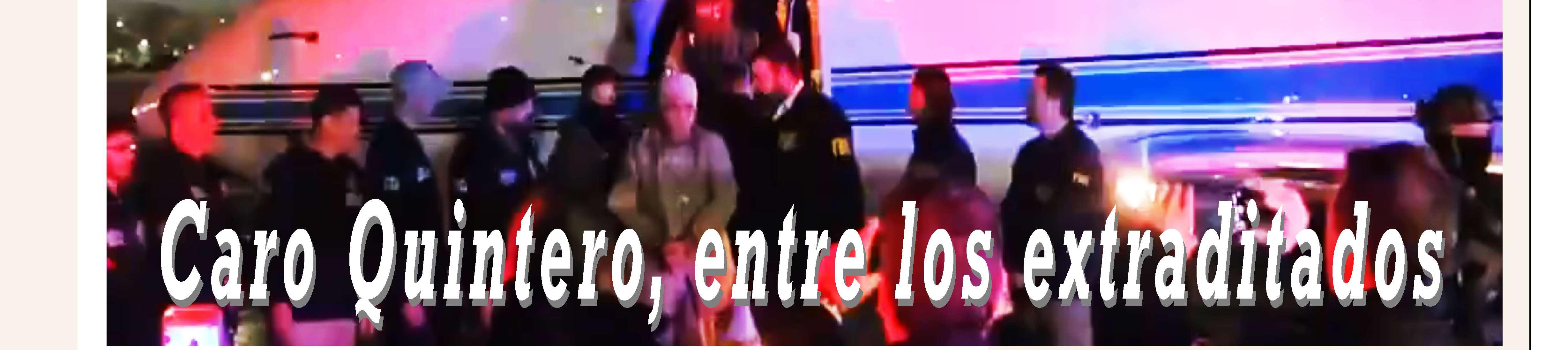 RuizVenegas y EduardoMeraz,dirigidospor nuestro presidenteeditor,NaimLibienKaui, destacaron las extradiciones a Estados Unidos de los hermanos Miguel Ángel y Omar Treviño Morales, mejor conocidos comoZ-40yZ-42,fundadoresdelaempresa criminal de "Los Zetas", requeridos por Cortes Federales de Justicia deWashington, NuevaYork yTexas,entre otros estado de la UniónAmericana, adondetambiénfueextraditado Rafael Caro Quintero, fundador,junto con Ernesto Fonseca Carrillo, del Cártel de Guadalajara, acusado del secuestro y asesinato del agente de la Agencia Antidrogas estadounidense (DEA), Enrique Camarena Salazar y del piloto mexicano Alfredo Zavala Avelar. Estados Unidos ofreció en su momento 20 millones de dólares por la "cabeza"delnarcotraficante, quienpúblicamente anunció que si le dejaban en libertad, enmenosdedosañospagaríaladeudaexterna del país. En1985,CaroQuinterofuedetenido en Costa Rica y deportado a nuestro país,dondeselesentencióa 40años deprisión; logró su liberación años antes de que cumpliera su condena, luego de lo cual se se extraditaron a lo que demuestra que nuestras autoridades cumplen con las exigencias del gobierno estadounidense paraevitarlaaplicacióndeunarancelde25 porcientoalasexportacionesmexicanas. los comunicadores el poco caso que los posibles aspirantes a las gubernaturas deGuerrero, Zacatecas y San Luis Potosí, Félix Salgado Macedonio, Saúl Monreal y la senadora Ruth González,esposa del actual gobernador,RicardoGallardo,alosllamadosdelas presidenta Claudia Sheinbaum Pardo y la líder nacional de Morena, Luisa María AlcaldeLuján,dequerespetenloestablecido en las reformas constitucionales contra y se abstengan de participar en las próximas contiendas, lo que según