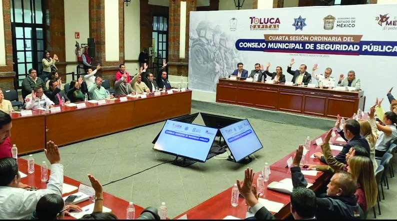 Toluca,México.-Enelmarco delacuartasesiónordinaria delConsejoMunicipalde SeguridadPública,presididaporel secretariodelAyuntamientode Toluca,JustoNúñezSkinfill,se dioseguimientoalosacuerdos establecidospreviamente,sepresentaronnuevosmecanismostecnológicosysedestacóeltrabajo coordinadodediversasdependenciasenfavordelaseguridadenla capitalmexiquense.