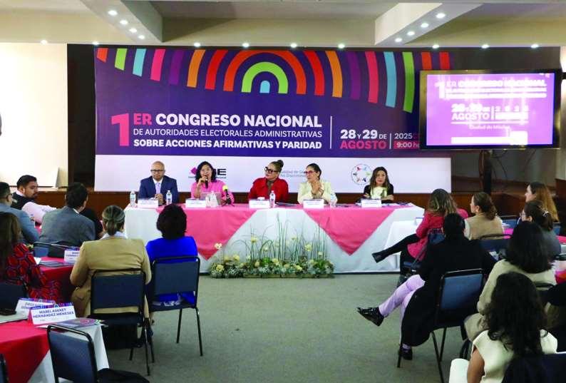 ElInstitutoElectoraldelEstadodeMéxico(IEEM)participóenelPrimer CongresoNacionaldeAutoridadesElectoralesAdministrativassobre AccionesAfirmativasyParidad,organizadoporelInstitutoNacional Electoral(INE),afindeintercambiarexperienciasconlos32 OrganismosPúblicosElectoralesLocales(OPLEs)delpaísyfortalecer mecanismosquegaranticenlaigualdadsustantivaylaparidaddegéneroenpróximosprocesoselectorales.