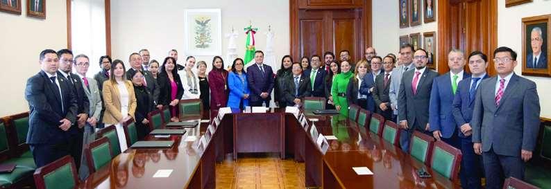 EnelSalónPresidentesdelhistóricoPalaciode JusticiadeToluca,DíazJuárezexplicóqueelacuerdoincluyelatransferenciaalPJEdomex-porparte delaSecretaríadelaContraloría-desistemastecnológicosparafortalecerelcontrol,vigilancia,auditoríayentrega-recepcióndeunidadesadministrativas.
