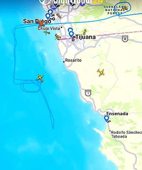 El avión partió alrededor de las 8:00 a.m. desde la base aérea naval de Whidbey,al norte de Estados Unidos, y se dirigió a la frontera con México,en los límites de Yuma,Arizona y San Luis Río Colorado, Sonora, donde dio varias vueltas en círculos hasta dirigirse hacia la costa de San Diego,California.